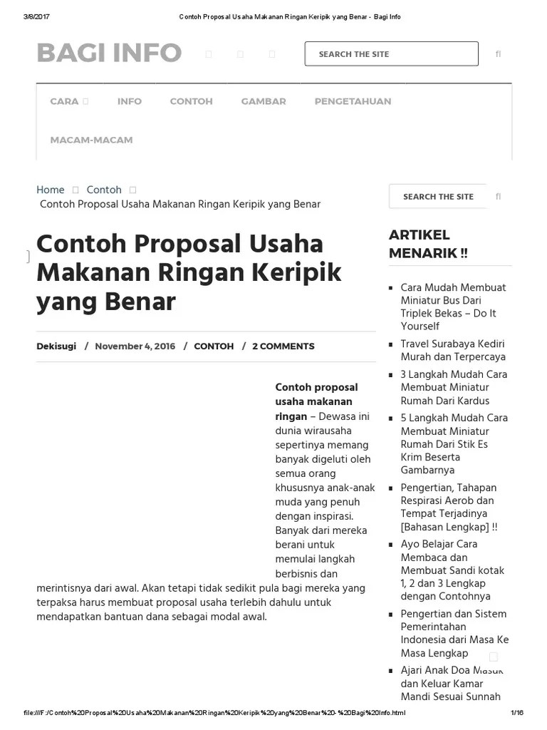 1 407 просмотров 1,4 тыс. Contoh proposal usaha, kegiatan, kerjasama, kegiatan sekolah tinggal edit. Keripik singkong sebagai salah satu makanan ringan yang disukai banyak orang merupakan makanan yang biasa dikonsumsi oleh masyarakat indonesia, hal ini menjadikan penulis tertarik untuk mempelajari bagaimana cara. Latar belakang keripik singkong merupakan salah satu produk makanan ringan yang banyak digemari konsumen. Selain pemilahan bahasa, dalam penulisan cerita juga pokok menurut.